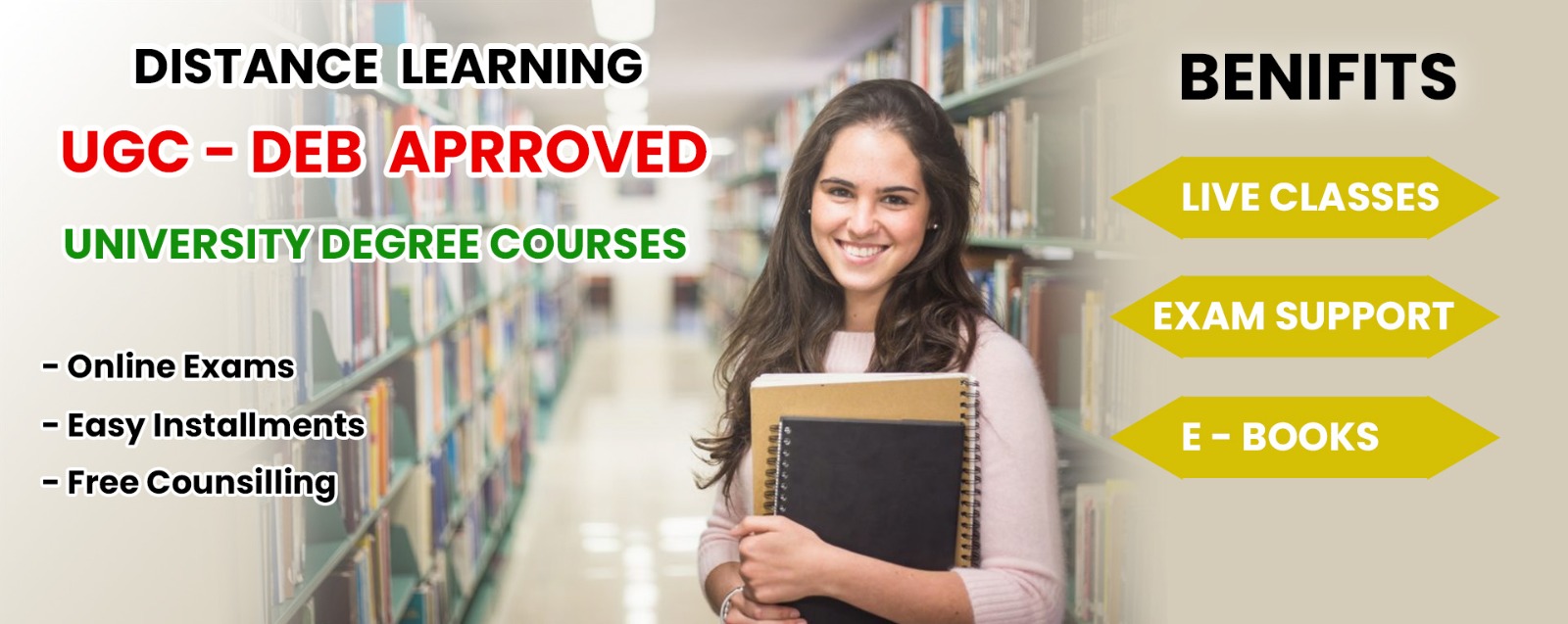 Earlier, books were issued physically from the university but in digital era, books also have transformed into e-books and can be downloaded from student login panel once the enrolment number generated. Now, students can also access to online lectures provided by the university. Marksheets will be provided from the centre and one can take print out of I-card from his university login panel.